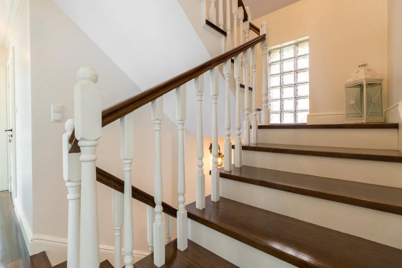 Идея для вашей лестницы: Если вы хотите добавить в подобный проект нотку индивидуальности, можно поэкспериментировать с цветом балясин. Вместо классического светлого оттенка выберите сложный серый, графитовый или даже оливковый цвет, который будет перекликаться с другими элементами вашего интерьера (например, с мягкой мебелью или текстилем).