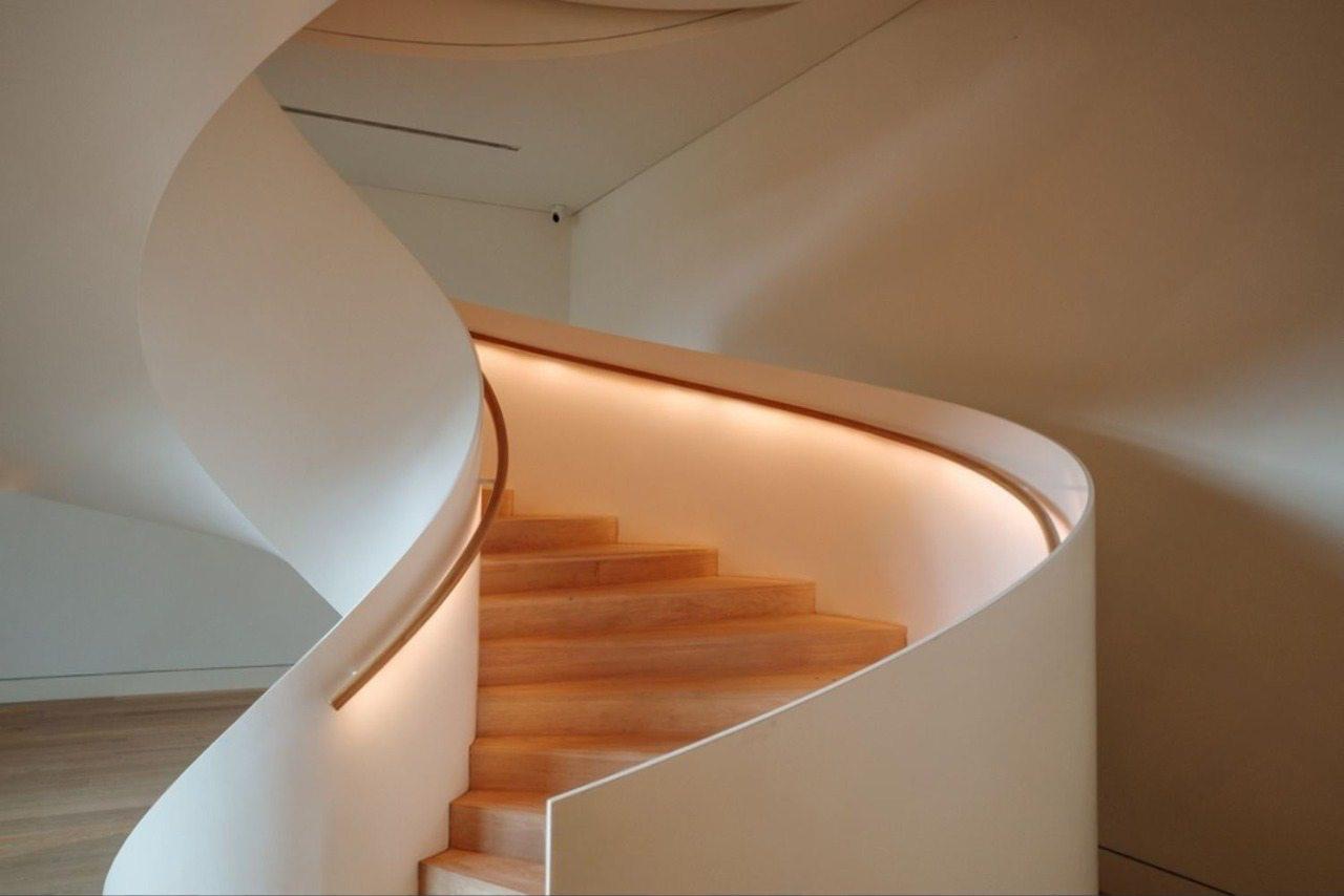 Полезный совет: Эффект «парящей» лестницы можно многократно усилить с помощью правильного освещения. Встроенная в стену светодиодная подсветка под каждой ступенью не только повысит безопасность в темное время суток, но и превратит вашу лестницу в завораживающий световой арт-объект вечером.